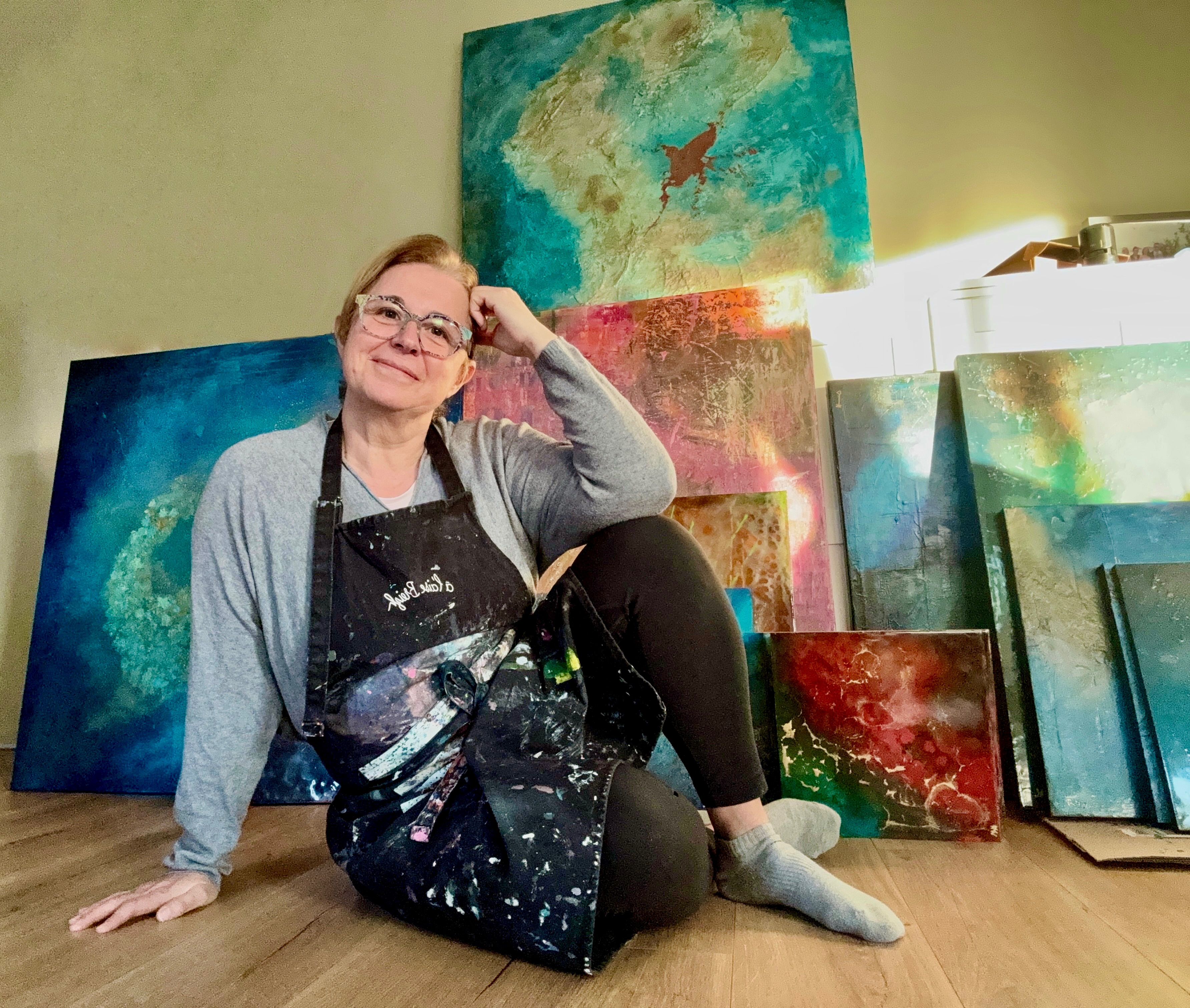Je suis une artiste peintre autodidacte d'Occitanie, qui a transformé son garage en un véritable atelier de création. Inspirée par mon quotidien et les souvenirs de ma grand-mère, elle-même artiste, j'ai hérité de son amour pour l’art et le partage.